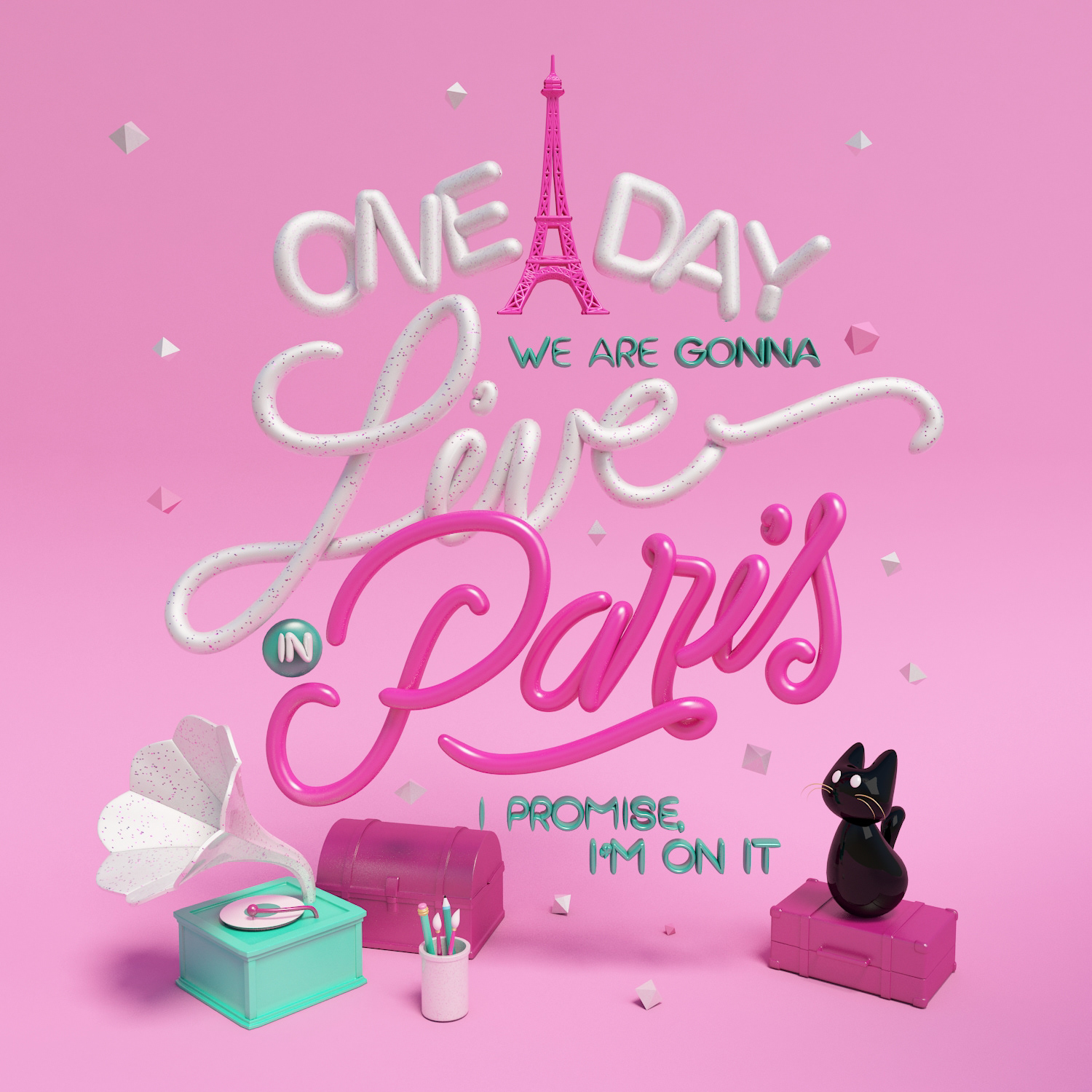 We made this as a our first collab project. One of us is a lettering addict and the other one a 3D modeling lover.